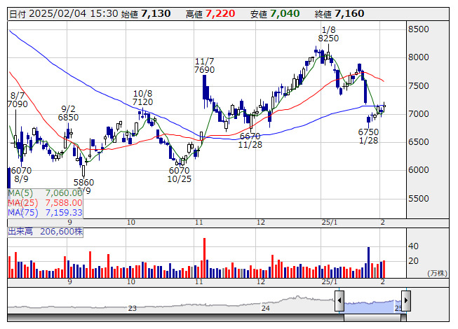 ダイヘン <日足> 「株探」多機能チャートより○ダイヘン <6622> [東証P]