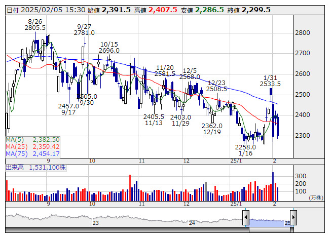ミスミG <日足> 「株探」多機能チャートより■財務省 : 2月5日受付
