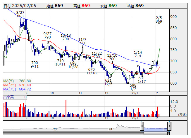 東都水 <8038> [東証S] 気配 前日もストップ高