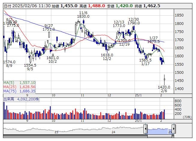 2025年02月06日11時31分 【材料】キッコマン---大幅反落、通期業績の上振れ期待はやや後退にも キッコマン <日足> 「株探」多機能チャートより キッコマン<2801>は大幅反落。前日に第3四半期の決算を発表、10-12月期事業利益は204億円で前年同期比3.6%減となっている。供給力不足などで欧州しょうゆの売上が失速する形になっているもよう。北米の増益率も固定費増などで鈍化する格好に。第3四半期累計営業利益は625億円で前年同期比17.1%増だが、2四半期連続で増益率は小幅にとどまっており、通期業績の上振れ期待などは後退する方向のようだ。 《ST》 提供:フィスコ