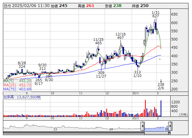 【材料】前場のランキング【値下がり率】 (2月6日)