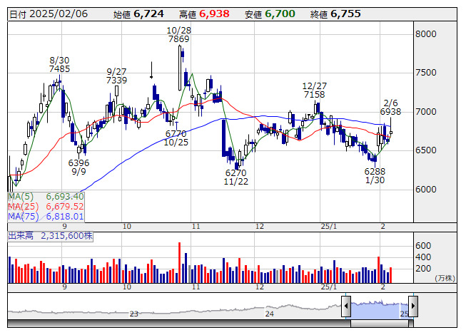 中外薬 <日足> 「株探」多機能チャートより(東証プライム上場 1637 銘柄対象)