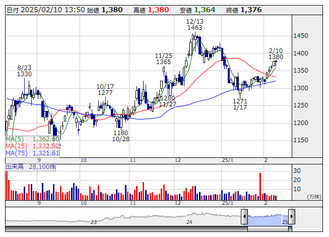 加藤製 <日足> 「株探」多機能チャートより加藤製作所<6390>は7日、同社の立川事業所が立川市の「ワーク・ライフ・バランス推進事業所」に認定されたと発表した。この制度は、従業員が仕事と家庭を両立し、いきいきと働き続けられる職場の実現に向けて取り組む事業所を立川市が認定するものである。