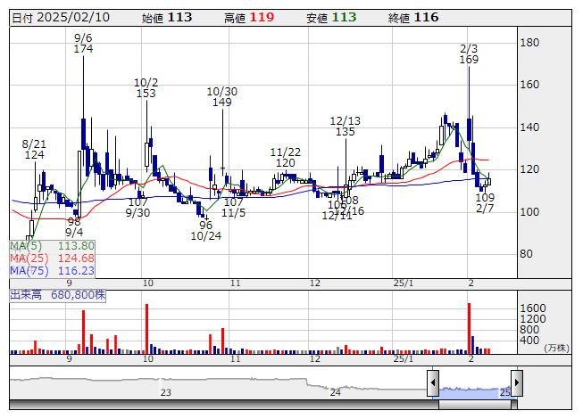 ジェリビンズ <日足> 「株探」多機能チャートより(銘柄コード) 銘柄 市場