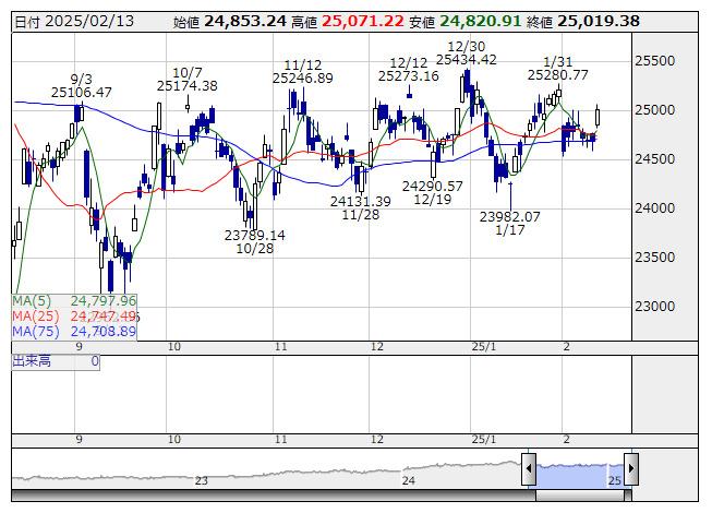 2025年02月14日08時49分 【市況】JPX日経400先物:14日寄り付き=15ポイント安、2万5050ポイント JPX日経400 <日足> 「株探」多機能チャートより 14日8時48分、JPX日経インデックス400先物期近2025年3月限は前日清算値比15ポイント安の2万5050ポイントで寄り付いた。前日のJPX日経インデックス400の現物終値2万5019.38ポイントに対しては30.62ポイント高。 株探ニュース
