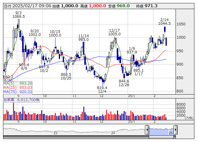 43. <7014> 名村造 東証S 922 2035 ( -4.6 )