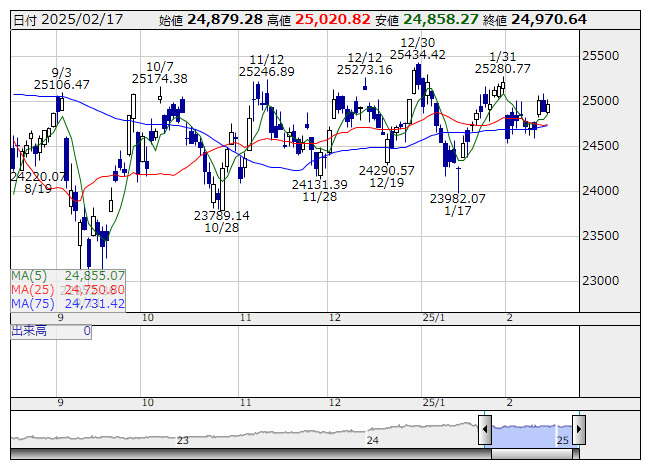2025年02月18日08時46分 【市況】JPX日経400先物:18日寄り付き=15ポイント安、2万5000ポイント JPX日経400 <日足> 「株探」多機能チャートより 18日8時45分、JPX日経インデックス400先物期近2025年3月限は前日清算値比15ポイント安の2万5000ポイントで寄り付いた。前日のJPX日経インデックス400の現物終値2万4970.64ポイントに対しては29.36ポイント高。 株探ニュース