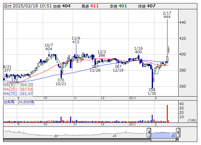 2025年02月18日10時56分 【材料】昭文社HD続伸、ラインヤフーとの地域創生推進を引き続き材料視 昭文社HD <日足> 「株探」多機能チャートより 昭文社ホールディングス<9475>は続伸。同社は17日、子会社マップルがLINEヤフー<4689>との間で地域創生に関する「共同取組推進に関する覚書」を締結したと発表した。LINE公式アカウントを活用した自治体や地域事業者の顧客基盤づくりとリピーターの創出に向けた取り組みを共同で推進していくという。これを受けて昭文社HD株は同日に商いを伴い急動意。きょうも引き続き買い材料視されているようだ。 出所:MINKABU PRESS