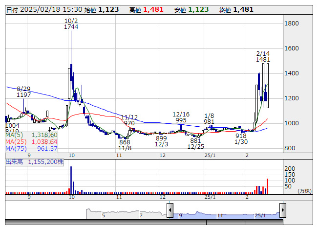 【材料】本日のランキング【寄付からの値上がり率】 (2月18日)