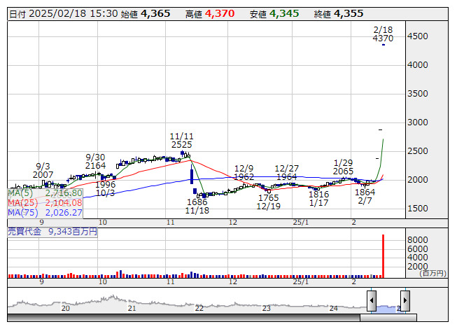1. <4435> カオナビ 4,355 (+51.2%) 9,343 ( 515倍)
