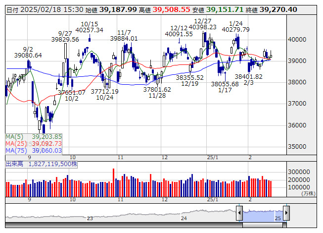 日経平均 <日足> 「株探」多機能チャートよりPTS市場全体、および日経平均構成銘柄の18日終値比の上昇率・下落率ランキングは以下のとおり。