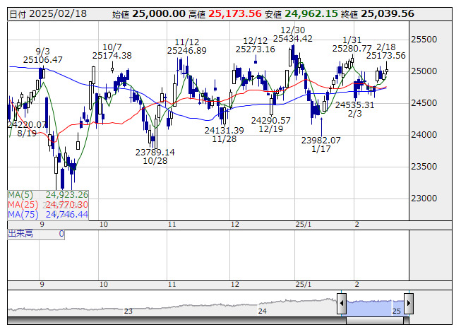 2025年02月19日08時46分 【市況】JPX日経400先物:19日寄り付き=25ポイント安、2万5015ポイント JPX日経400 <日足> 「株探」多機能チャートより 19日8時45分、JPX日経インデックス400先物期近2025年3月限は前日清算値比25ポイント安の2万5015ポイントで寄り付いた。前日のJPX日経インデックス400の現物終値2万5039.56ポイントに対しては24.56ポイント安。 株探ニュース