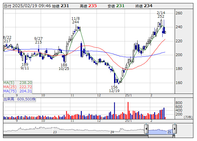 ソースネクス <日足> 「株探」多機能チャートより■財務省 : 2月19日受付