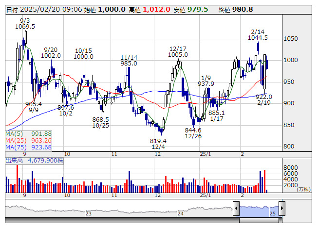 39. <6501> 日立 東証P 988 4364 ( -0.4 ) 日経225・JPX日経400採用