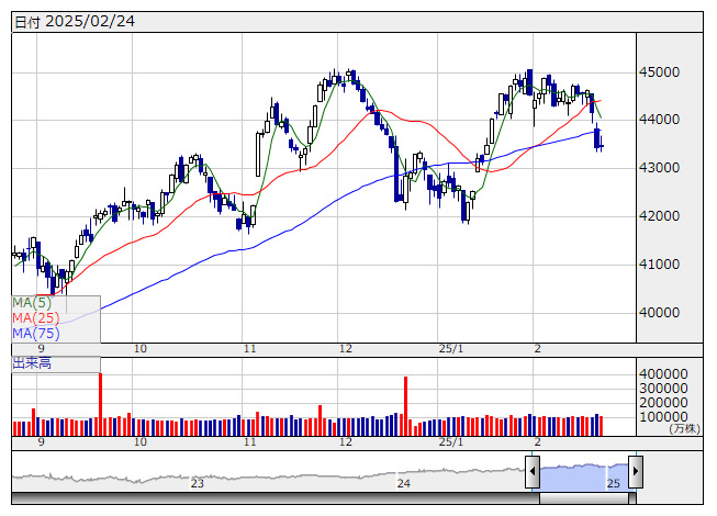 NYダウ <日足> 「株探」多機能チャートより25日前場の取引では以下の3つのポイントに注目したい。