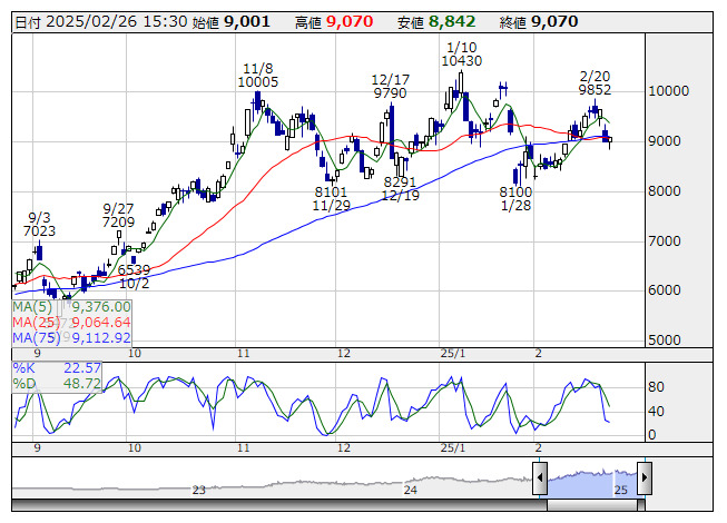 <6857> アドバンテスト 9070 +70 ( +0.8%) 9064.6