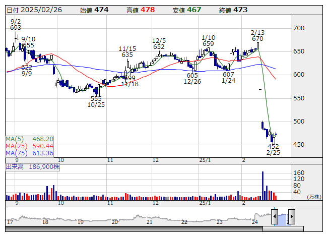 セグエG <日足> 「株探」多機能チャートよりセグエグループ<3968>は25日、資本業務提携先である株式会社ZenmuTech(以下、「ZenmuTech」)が2025年2月21日に東京証券取引所グロース市場への新規上場承認を取得したと発表した。
