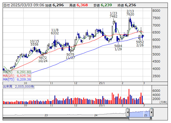 1. <5803> フジクラ 東証P 6,169 6273 ( +2.2 ) 日経225・JPX日経400採用