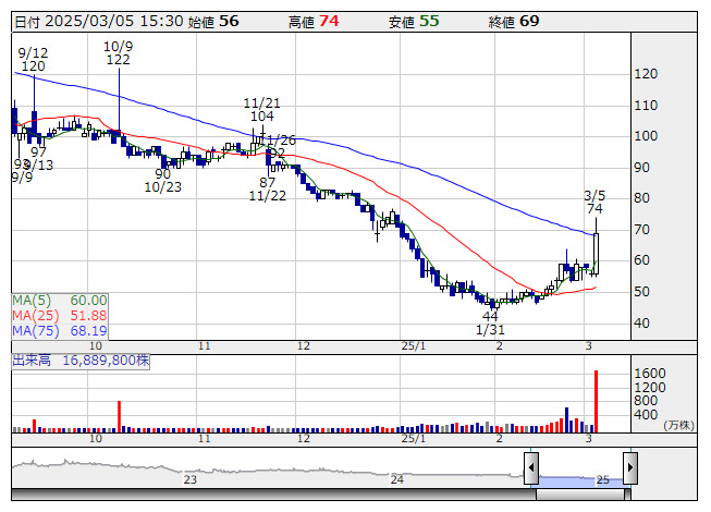 【材料】本日のランキング【寄付からの値上がり率】 (3月5日)