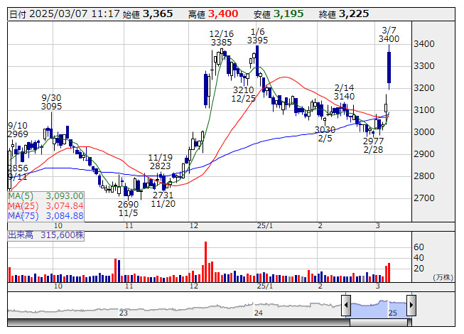 2025年03月07日11時18分 【材料】カナモト---大幅続伸、第1四半期大幅増益決算を好感 カナモト <日足> 「株探」多機能チャートより カナモト<9678>は大幅続伸。前日に第1四半期決算を発表、営業利益は49.9億円で前年同期比67.2%増となり、上半期計画66億円、同6.6%増に対する進捗率は75%超の水準となっている。災害復興工事やインフラ整備に加え、各種大型プロジェクトも継続して施工され、建設機械のレンタル需要が底堅く推移のもよう。中古建機販売も大きく伸長しているようだ。業績の上振れが意識される展開になっているとみられる。 《TY》 提供:フィスコ