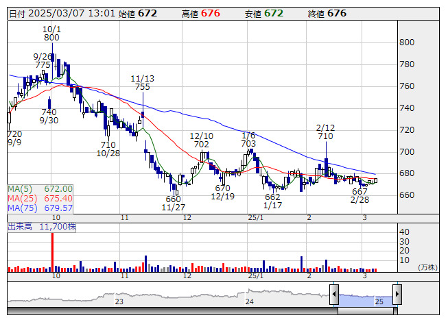 ハークスレイ <日足> 「株探」多機能チャートよりハークスレイ<7561>は5日、子会社である店舗流通ネットの2025年3月期2月の月次報告を発表した。