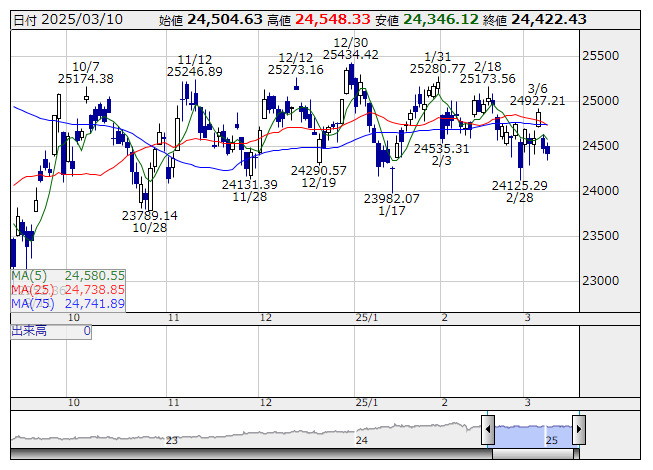 2025年03月11日08時46分 【市況】JPX日経400先物:11日寄り付き=300ポイント安、2万4170ポイント JPX日経400 <日足> 「株探」多機能チャートより 11日8時45分、JPX日経インデックス400先物期近2025年3月限は前日清算値比300ポイント安の2万4170ポイントで寄り付いた。前日のJPX日経インデックス400の現物終値2万4422.43ポイントに対しては252.43ポイント安。 株探ニュース