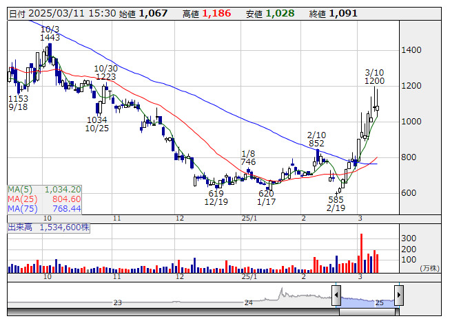 2025/03/04 5.68% → 6.70% 1,185,300 2025/03/11 16:18