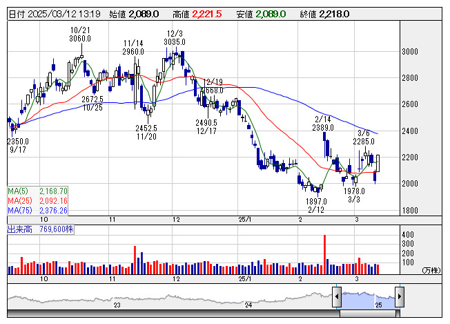 2025年03月12日13時19分 【材料】PD---大幅反発、国内証券ではトップピック推奨継続で目標株価引き上げ ペプドリ <日足> 「株探」多機能チャートより PD<4587>は大幅反発。SBI証券では投資判断「買い」を継続し、目標株価を3400円から3900円に引き上げている。セラノスティクス分野が当面の業績をけん引する見方に変更はないとして、トップピック推奨を継続しているもよう。パイプライン数や技術進展を考慮すれば、25年12月期の会社計画数値は十分達成可能と判断しているほか、経口マイオスタチン阻害薬の導出契約が達成された場合は上方修正も十分あり得るとみている。 《ST》 提供:フィスコ