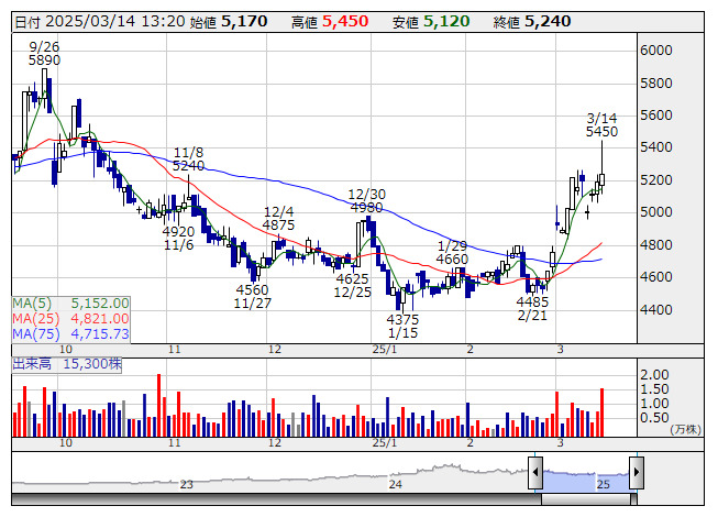 2025年03月14日13時19分 【材料】モリ工業が3日続伸、25年3月期業績予想及び配当予想を上方修正 モリ工業 <日足> 「株探」多機能チャートより モリ工業<5464>が3日続伸している。午後1時ごろ、25年3月期の連結業績予想について、売上高を450億円から463億円(前期比3.3%減)へ、営業利益を47億円から54億円(同8.4%減)へ、純利益を35億円から40億円(同11.5%減)へ上方修正し、あわせて期末配当予想を100円から130円へ引き上げたことが好感されている。 当初の想定よりも販売量の減少が少なく、また販売単価の下降も緩やかなことが要因としている。なお、年間配当予想は210円(前期230円)となる。 出所:MINKABU PRESS