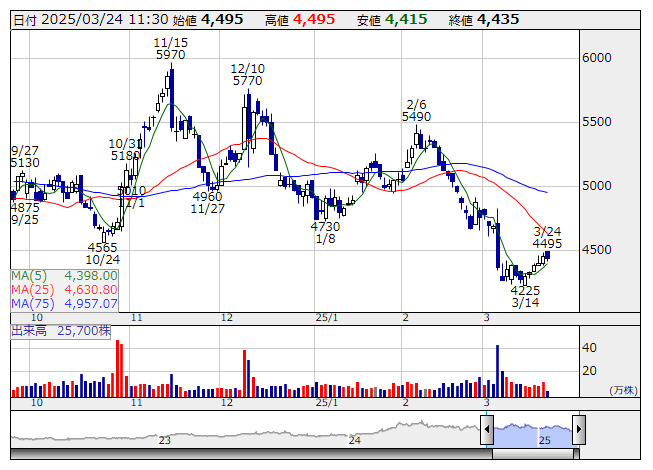 泉州電 <日足> 「株探」多機能チャートより■財務省 : 3月24日受付
