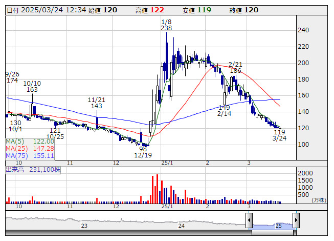 アクセルM <日足> 「株探」多機能チャートより■財務省 : 3月24日受付