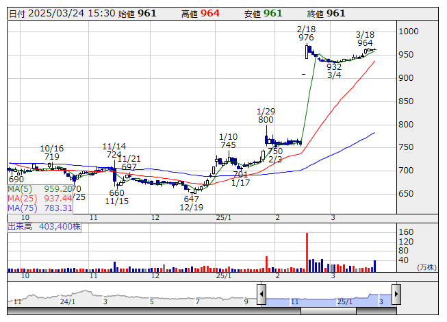 2025/03/14 5.03% → 3.08% 832,400 2025/03/24 15:50