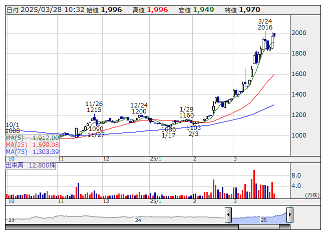 Aパーチェス <日足> 「株探」多機能チャートより■アルファパーチェス<7115>の事業概要