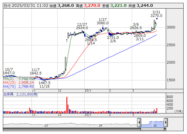 2025年03月31日11時02分 【材料】トプコン---大幅反発、MBO実施正式発表でTOB価格にサヤ寄せ トプコン <日足> 「株探」多機能チャートより トプコン<7732>は大幅反発。MBOの実施を発表している。米投資ファンドのKKRと産業革新投資機構が主導し、経営陣も株式を取得する。業績が低迷する中、非公開化で意思決定を早め、立て直しにつなげる方針。TOB価格は3300円で先週末終値比5.4%のプレミアム。7月末のTOB開始を目指しているようだ。24年12月には非公開化への観測報道が伝わっており、株価は1800円レベルからこれまで大きく水準訂正を果たしてきた。 《ST》 提供:フィスコ