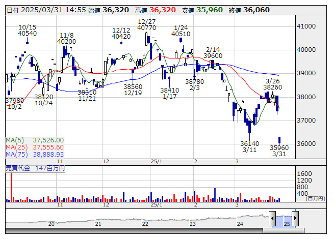 1. <2525> 農中日経平均 36,060 ( -3.6%) 147 ( 357倍)