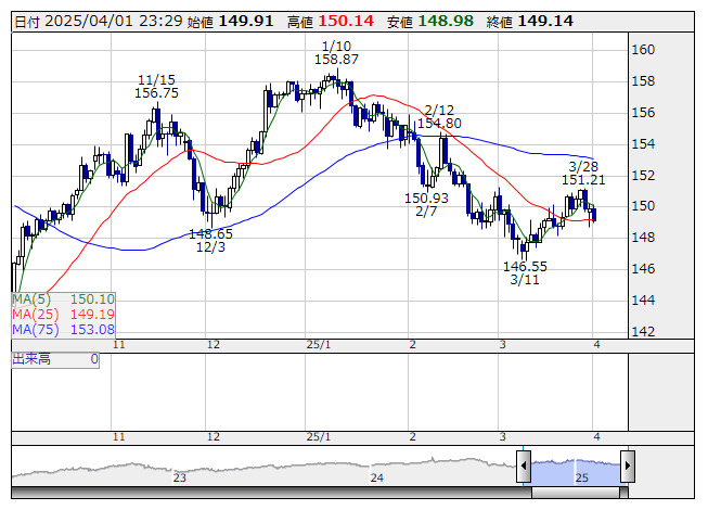予想を下回った3月ISM製造業景況指数や2月JOLT求人件数を受け、米国債相場は続伸。10年債利回りは4.13%まで低下した。ドル売りも強まり、ドル・円は149円50銭から148円98銭まで下落。ユーロ・ドルは1.0780ドルから1.0810ドルまで上昇。ポンド・ドルは1.2880ドルから1.2899ドルまで上昇した。