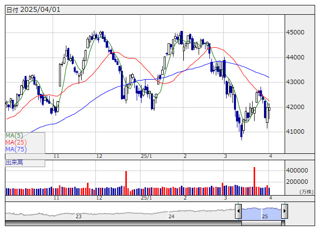 2日の東京株式市場は方向感が出にくいなかも下値抵抗力を発揮し、頑強な値動きとなることが予想される。トランプ米政権が打ち出す相互関税や自動車関税の導入を目前に売り買いともに様子見ムードが強まりそうだ。前日の欧州株市場ではドイツの主要株価指数であるDAXが5日ぶりに反発し1.7%高に買われたのをはじめ、仏CAC40、英FTSE100など総じて高くなった。特に目を引く手掛かり材料は見当たらなかったが、ここ最近の調整で株価に値ごろ感がでており、自律反発狙いの買いが優勢となった。また、米国株市場ではNYダウが小幅反落したものの、エヌビディア<