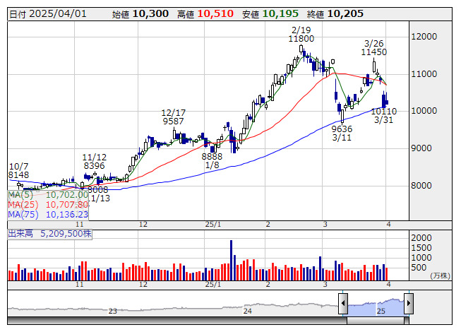 <8035> 東エレク 7543 ( 3) 20,445 +195 ( +1.0%)