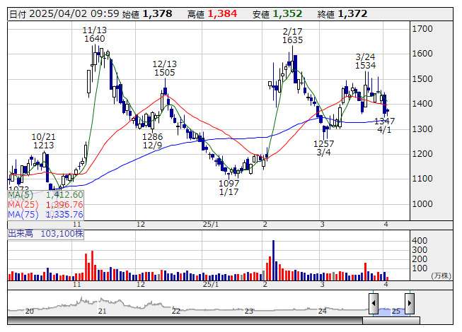 HENNGE <日足> 「株探」多機能チャートより■財務省 : 4月2日受付