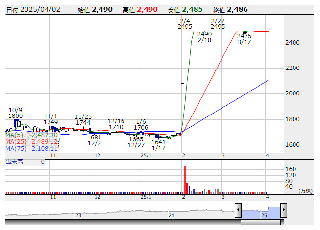 ギガプライズ <日足> 「株探」多機能チャートより■財務省 : 4月2日受付