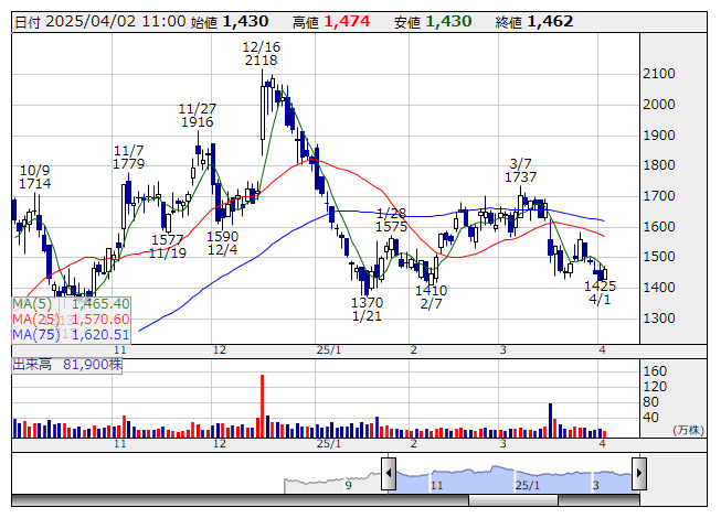 2025年04月02日11時00分 【材料】FEASYは5日ぶり反発、3月度の既存店会員数は14%増 FEASY <日足> 「株探」多機能チャートより フィットイージー<212A>が5営業日ぶりに反発している。同社は1日取引終了後、3月度の主要KPI(会員数及び店舗数)を公表。既存店の会員数は前年同月比14.0%増の12万1000人となり、順調に推移していることが買い手掛かりとなっているようだ。 全店ベースの会員数は同53.8%増の16万3000人。全店舗数は194店で、前月から3店舗の増加、前年同月と比べると46店舗の増加となっている。 出所:MINKABU PRESS