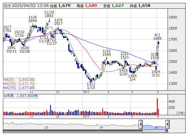 9603>が続伸。岩井コスモ証券は1日、同社株の投資判断を「B」から「A」へ2段階引き上げた。目標株価は1800円から2000円に見直した。同社は3月31日、発表を延期していた24年10月期の決算を公表した。前期の連結純利益は87億1700万円となり23年10月期の26億2800万円の赤字から黒字転換した。欧州方面などへの日本発海外旅行関連収益が回復した。また、前期決算と同時に発表した第1四半期(24年11月~25年1月)の連結営業利益は前年同期比61.1%増の52億900万円と好調だった。25年10月期の同利益は、会社側では120億円(前期比10.6%増)を予想しているが、同証券では135億円への上振れを見込んでいる。