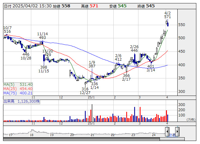 シンクロ <日足> 「株探」多機能チャートより■財務省 : 4月2日受付