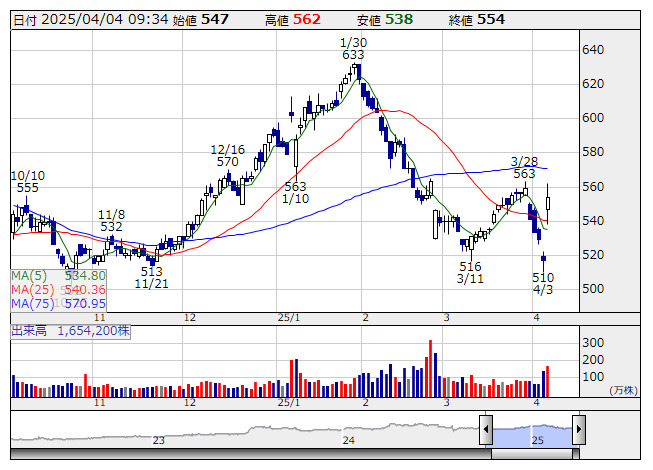 オンワード <日足> 「株探」多機能チャートより「23区」をはじめとする主なブランド事業の成長を新規出店の拡大などで加速させるほか、昨年10月から連結対象となったウィゴー事業の通年寄与を見込む。新規出店やデジタル関連投資に伴う減価償却費の一時的な増加はあるものの、値引き販売の抑制や在庫管理の徹底などによる粗利率の改善を見込み、増益転換を目指す。