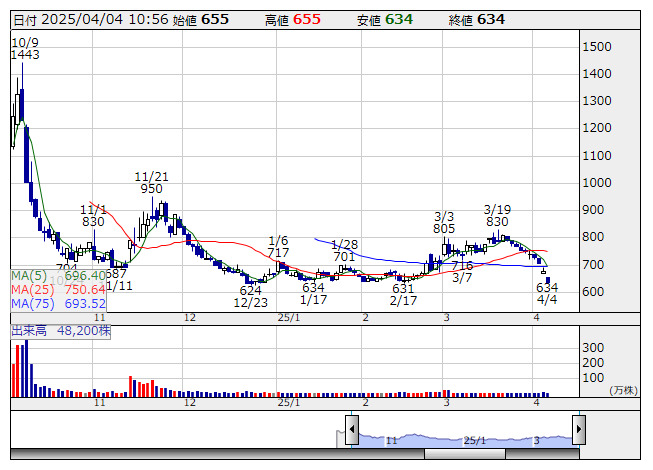 アスア <日足> 「株探」多機能チャートより物流会社の安全活動等に関するコンサルティングを中核事業としているアスア<246A>の業績が好調に推移している。2024年問題や新物流2法の成立により、物流業界は大変革期を迎えており、同社の事業環境には追い風が吹く。株価もPER12倍台と割安水準となる。