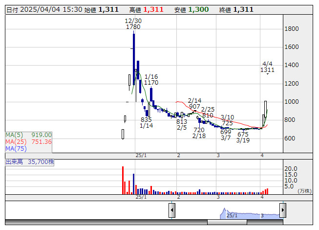 【材料】本日のランキング【値上がり率】 (4月4日)