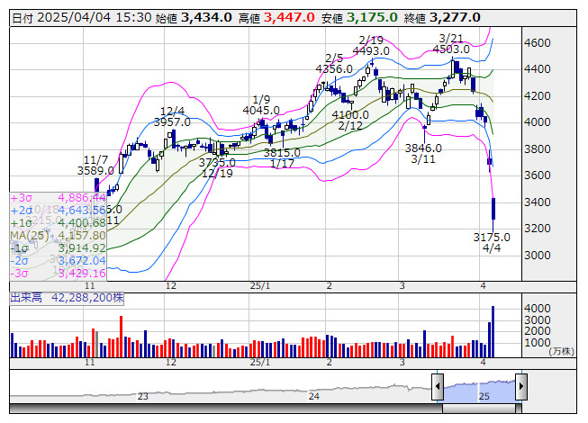 【特集】急落後のリバウンド狙う、ボリンジャー【-3σ】ブレイク銘柄 21社選出 <テクニカル特集> 4月4日版