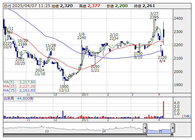 3353>は大幅反発。先週末に25年2月期の決算を発表、営業利益は16.9億円で前期比8.5%増となったが、従来予想の18億円は下振れている。一方、創業40周年記念配当実施などで、期末配当金は25円から40円に引き上げている。また、26年2月期営業利益は19.5億円で同15.2%増の見通しとし、年間配当金は前期比55円増の120円としている。株主還元方針を変更し、これまで20%としていた配当性向目標を35%以上にするとしている。