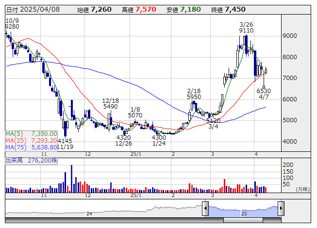 <4894> クオリプス 248541 ( 277) 8,950 +1,500 (+20.1%) iPS細胞由来心筋細胞シート承認申請