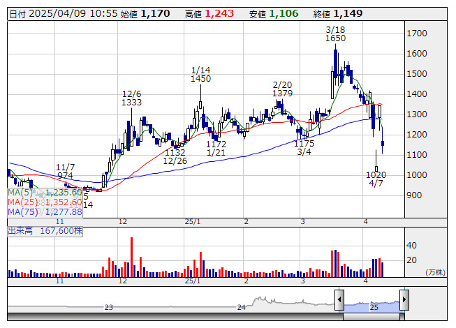 2025年04月09日10時56分 【材料】放電精密---大幅反落、今期の増益率鈍化見通しをマイナス視 放電精密 <日足> 「株探」多機能チャートより 放電精密<6469>は大幅反落。前日に25年2月期の決算を発表、営業利益は6.9億円で前期比3倍となり、従来予想の3.9億円を大幅に上回る着地となっている。年間配当金も従来計画の7円から12円に引き上げ。ただ、第3四半期までの進捗から上振れ自体は想定線とみられる。また、26年2月期は7.1億円で同3.6%増の見通しと、増益率は鈍化する計画となっている。決算期待が高かったとみられる中、マイナス視する動きが優勢に。 《ST》 提供:フィスコ